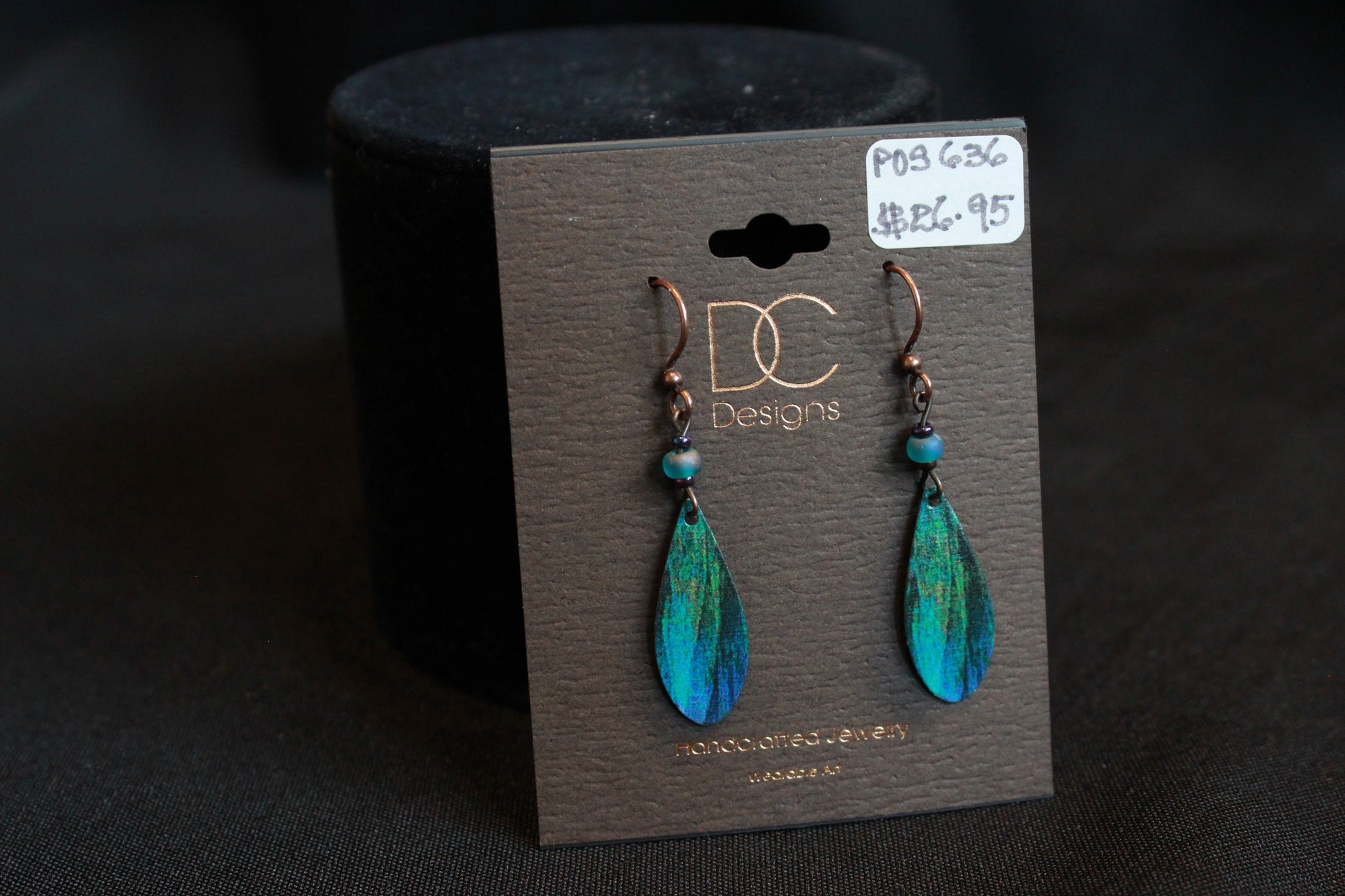 Our very stylish earrings are ultra-light weight & water resistant. Each earring is a handcrafted UV giclée printed both sides on stainless steel. We use hypo-allergenic, antiqued cooper ear wires. Dimensions: .5″ x 1.375″.